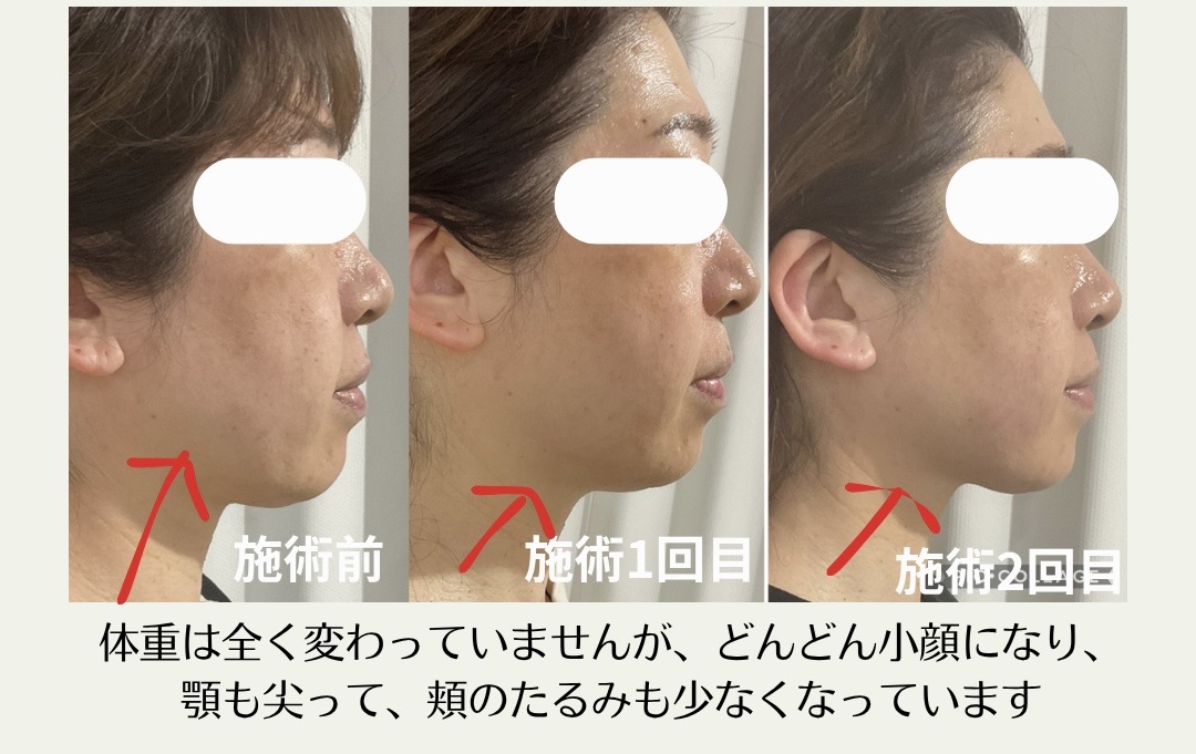 痛みや腫れがなく、フェイスラインをすっきりと引き締めていきます。